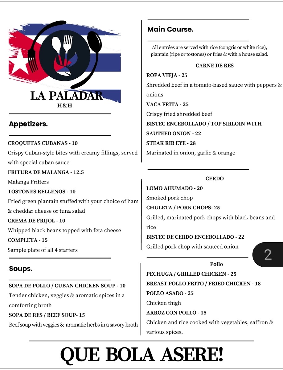 The menu at La Paladar H&H features mouthwatering specialties such as the Sandwich Cubano, made with two types of ham, roasted pork, and cheese, all sandwiched between crusty bread. The Pan Con Lechon is another must-try, featuring tender roasted pork served on a Cuban Kaiser roll.